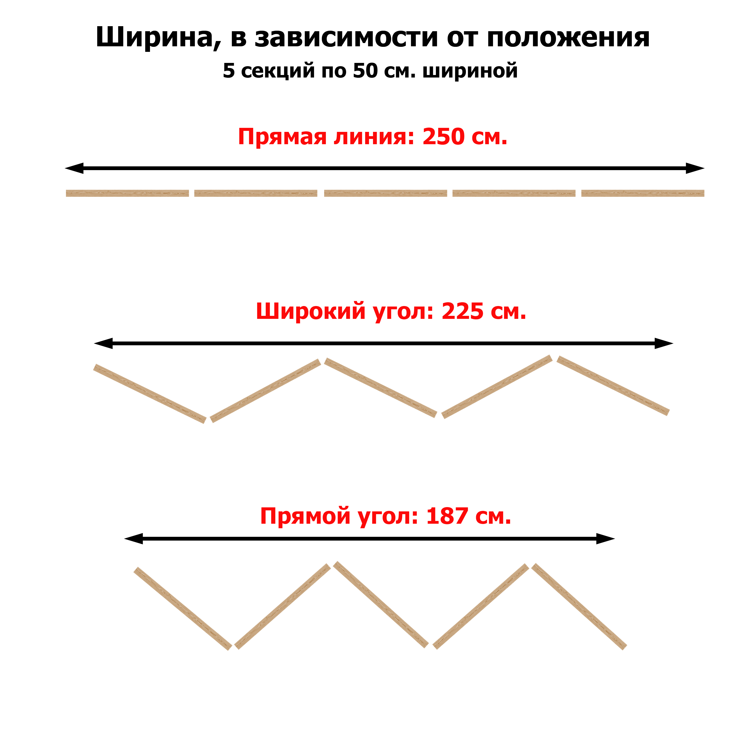 - 5 створок: Ширина в полностью разложенном виде (в прямую линию): 200 см. Ширина в сложенном виде (гармошкой): 150-185 см.