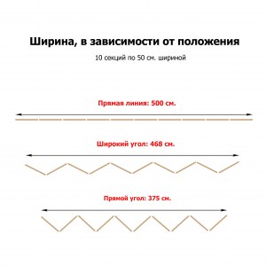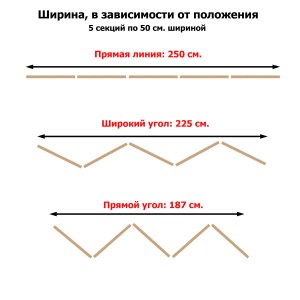 - 6 створок: Ширина в полностью разложенном виде (в прямую линию): 240 см. Ширина в сложенном виде (гармошкой): 180-225 см.